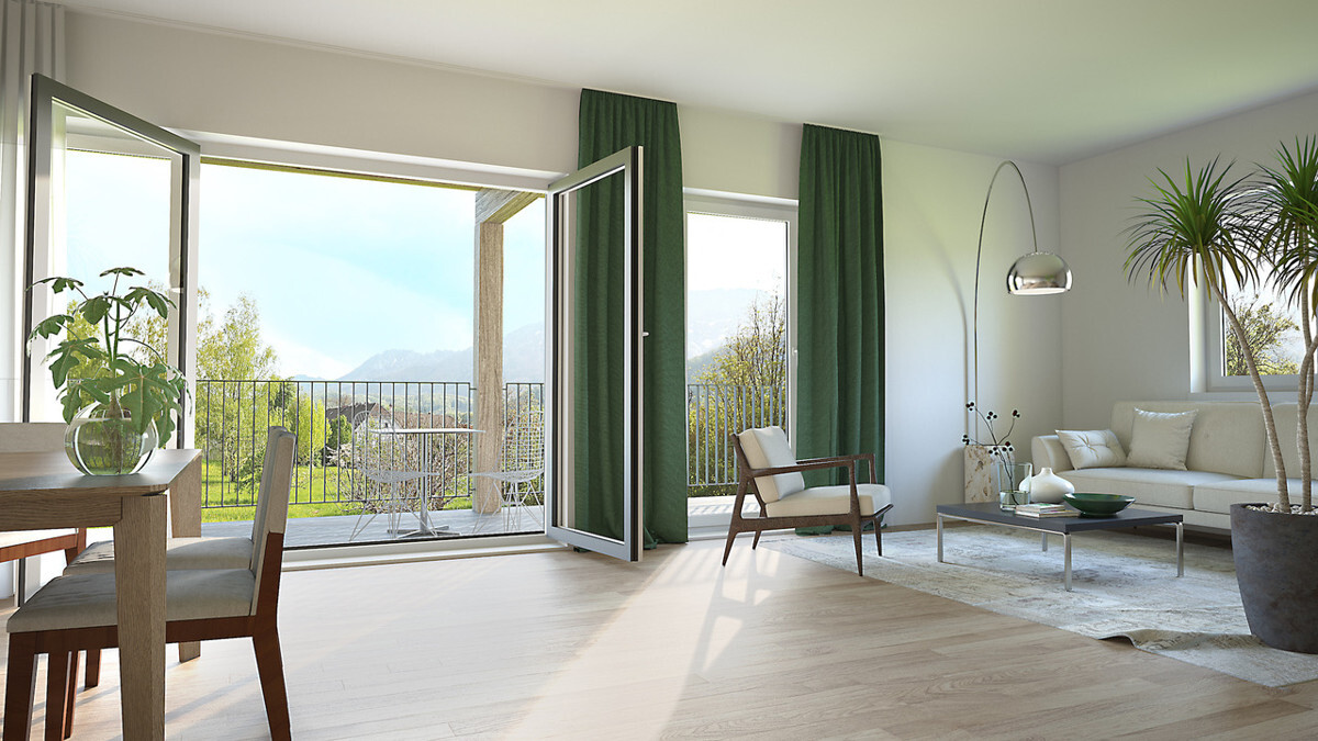 Der Neubau punktet mit perfekten Grundrissen von 46 bis 84 m², ökologischer Niedrigstenergie-Holzbauweise und großzügige Freiflächen. Durch den Einsatz von Solar, PV auf den Carports und einer Pelletsheizanlage ist das Haus weitgehend energieautark. Ein nachhaltiges Konzept für alle.